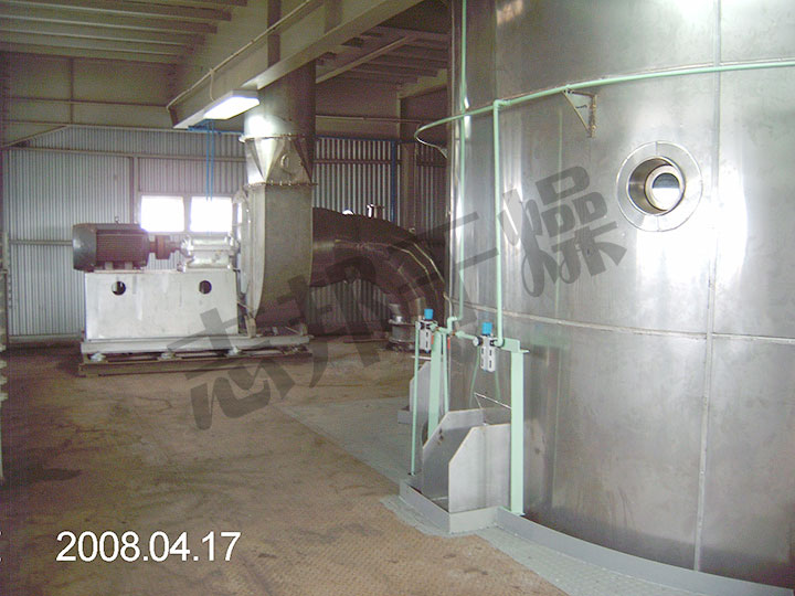 2、采用并流型噴霧干燥形式能使液滴與熱風同方向流動,雖然熱風的溫度較高,但由于熱風進入干燥室內與噴霧液滴接觸,室內溫度急降,而物料的濕球溫度基本不變,因此也適宜于熱敏性物料干燥。